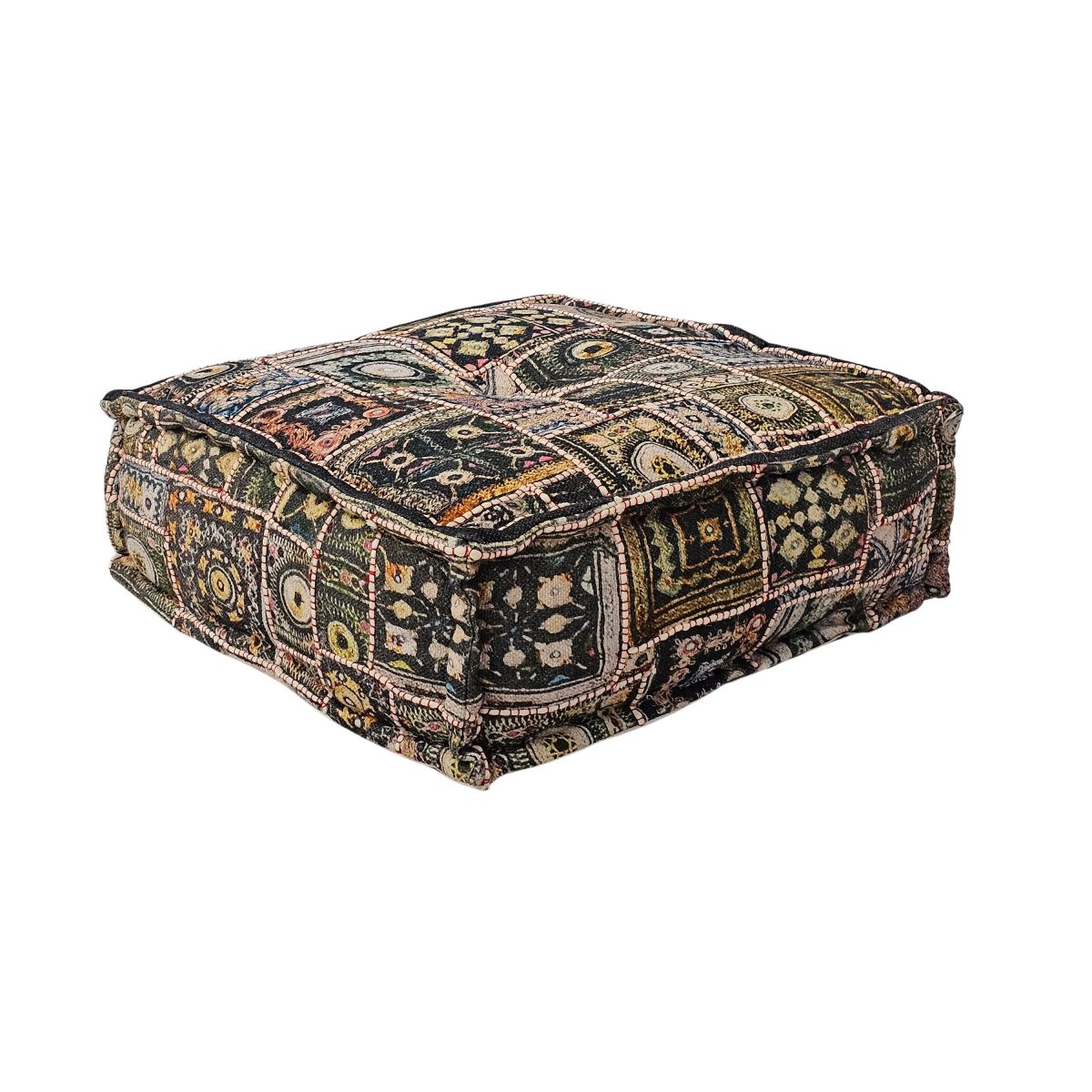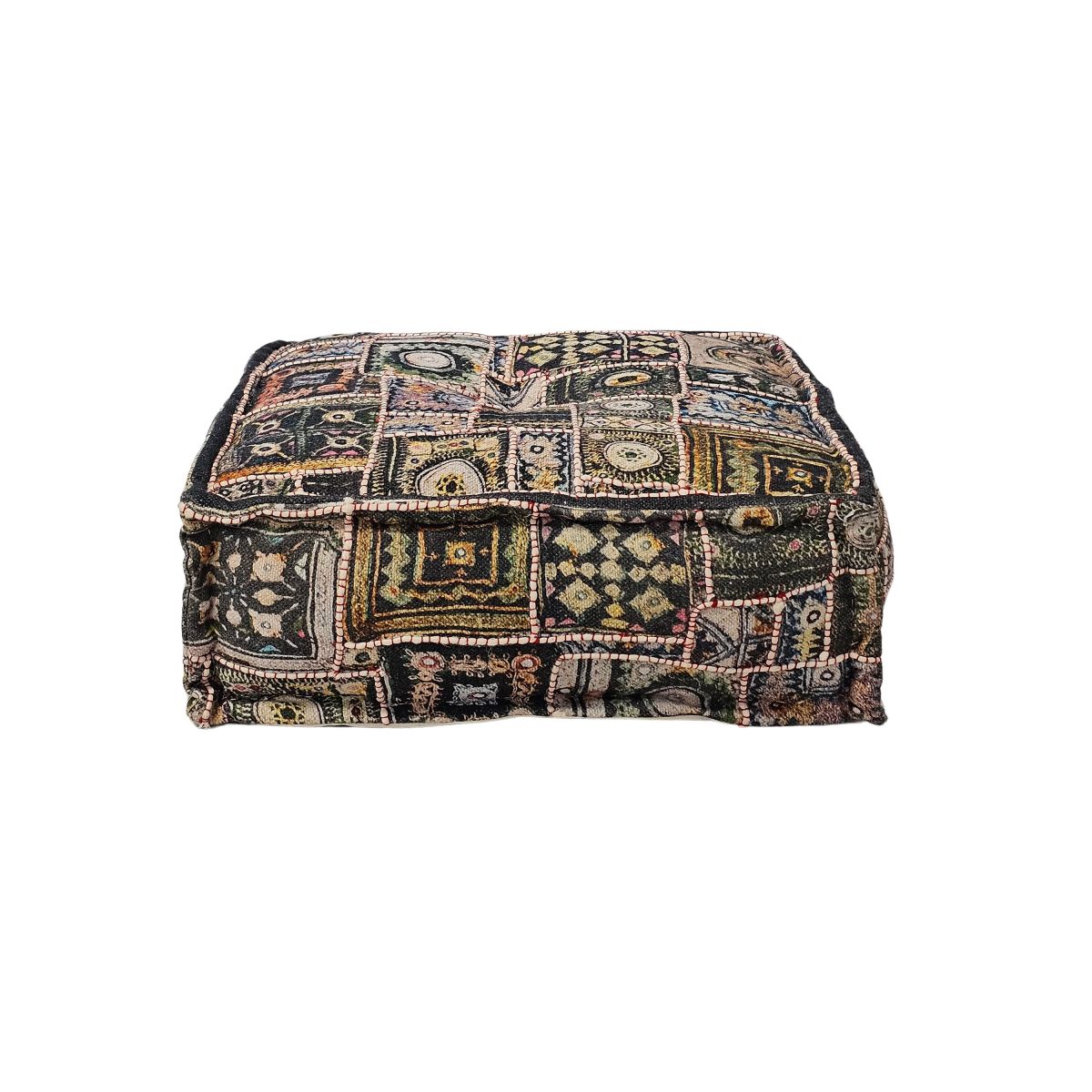 The Kiara Pouffe from our Naksha Range is a bohemian-inspired piece with a strong foundation in traditional Indian textile artistry. Featuring intricate Dori embroidery work that adds a layer of raised texture and richness, and a patchwork construction that ties together its geometric elements, the Kiara Pouffe showcases traditional Indian craftsmanship. A visually captivating and tactile piece, it's perfect for casual seating, as a bed end or as an accent piece when paired with a neutral sofa or rug.