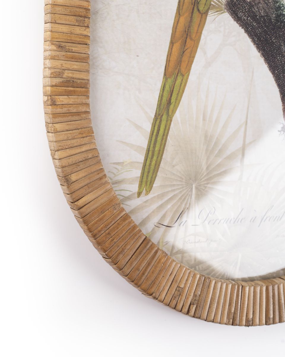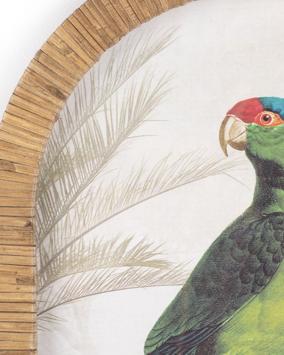Add a pop of colour and timeless charm to your space with the Parrot Framed Wall Art. Featuring a striking parrot in classic ornithological illustration style, this framed print combines natural elegance with vintage artistry. Complete with a wooden frame with rattan detailing, it's a bold yet elegant piece that works wonderfully as a standalone piece or as part of a curated gallery wall. Ideal for living areas, hallways, bedrooms or studies.