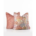 A plush dusty rose velvet backing complements the front design perfectly, while matching velvet piping provides a refined, tailored edge. Inside, a feather inner offers premium comfort and lasting loft, ensuring the cushion remains beautifully plump and inviting.