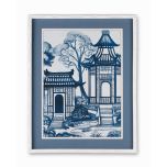The Pavilion Framed Wall Art brings an air of architectural elegance into your space. Featuring a finely detailed illustration of two striking blue pagodas set amongst trees and lush foliage, it's a striking focal point for any wall. The rich blue tones and neutral background evoke the artistry of traditional chinoiserie. Complete with a wooden frame in a bamboo-like, textured finish, it's a bold yet elegant piece that works wonderfully as a standalone piece or as part of a curated gallery wall. Ideal for living areas, hallways, bedrooms or studies.