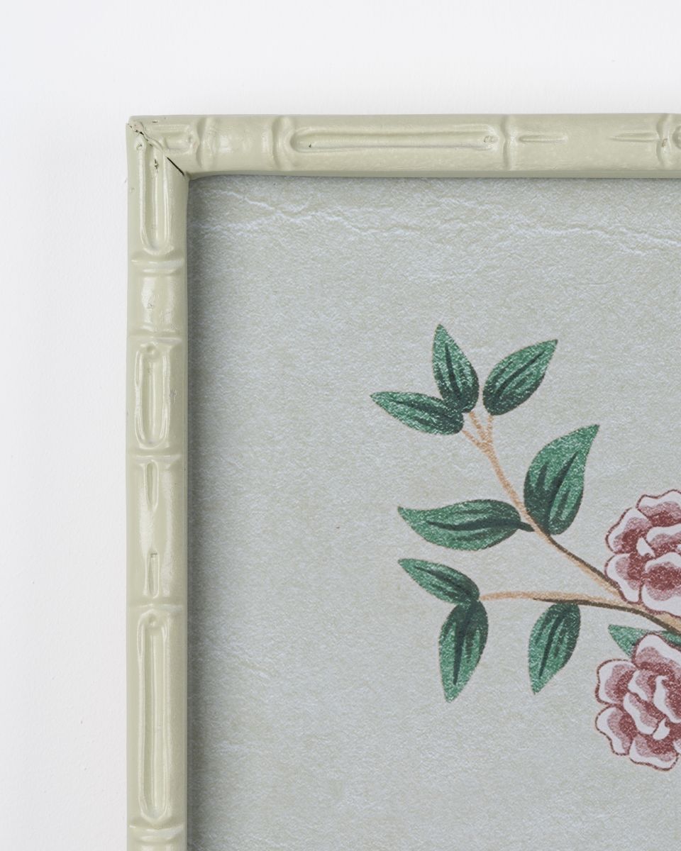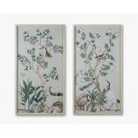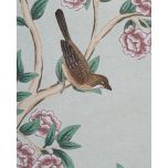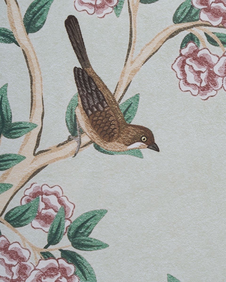 - Features a graceful depiction of birds amidst blossoming branches and lush greenery