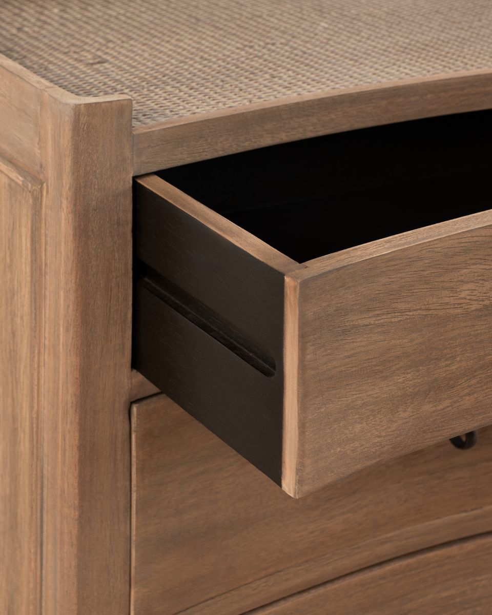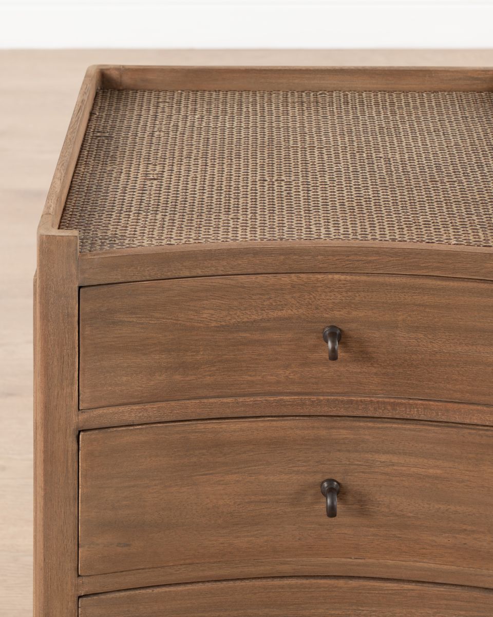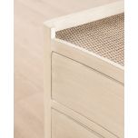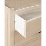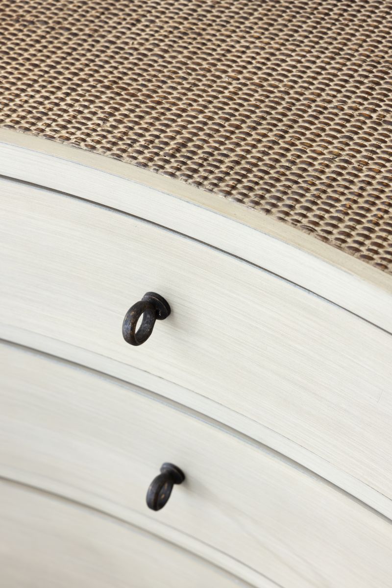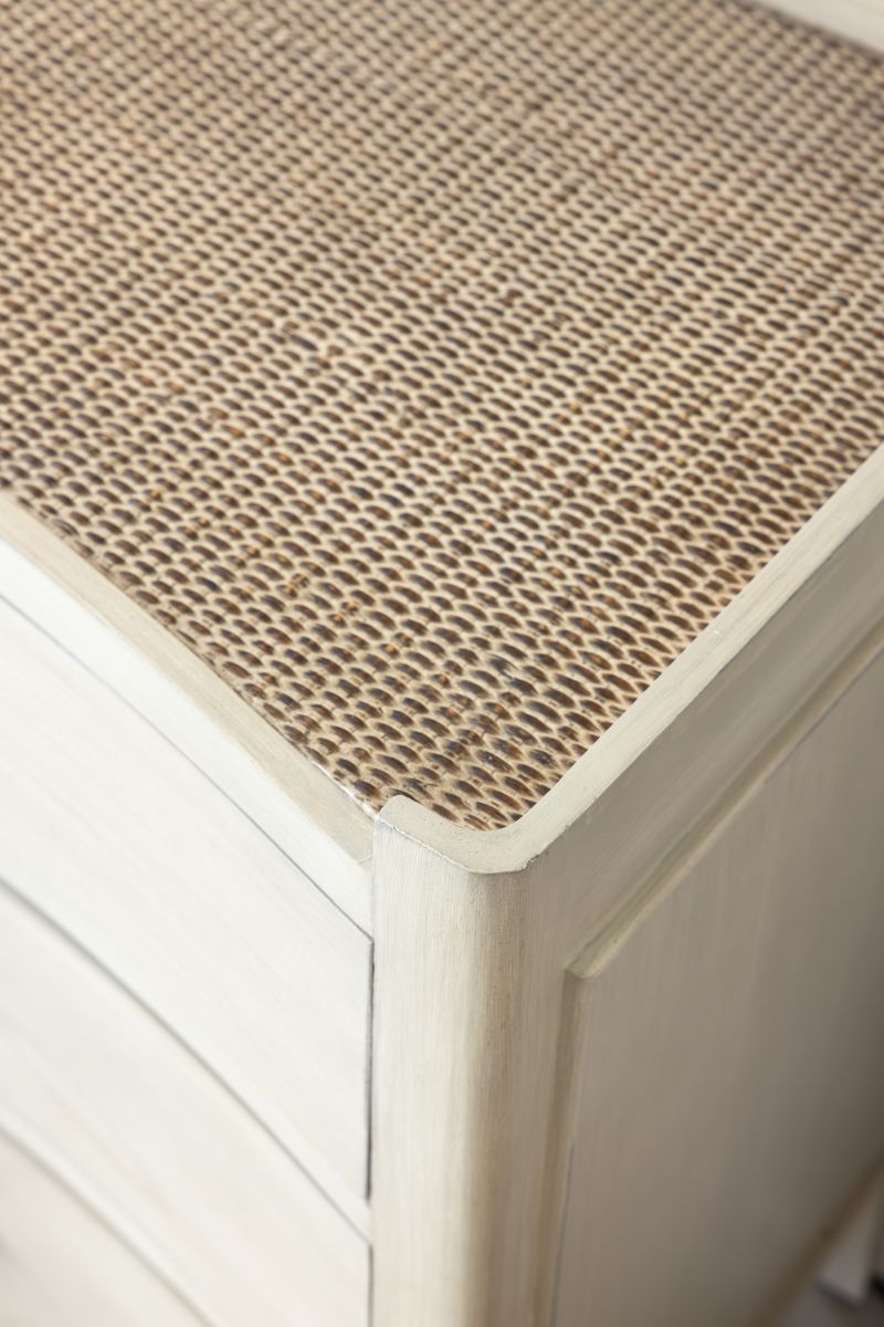 The Plantation bedside table from the Villa collection combines French style with a contemporary twist. Its classic design is defined by fine proportions and is accentuated by a rattan-detailed top. The versatile pale wood ensures it complements any colour palette, while the simple metal handle adds a touch of elegance. Position this bedside table alongside a neutral or pastel bedspread to enhance its subtle charm. Available in both white and natural finishes, it seamlessly integrates into varied interiors, providing functional sophistication.