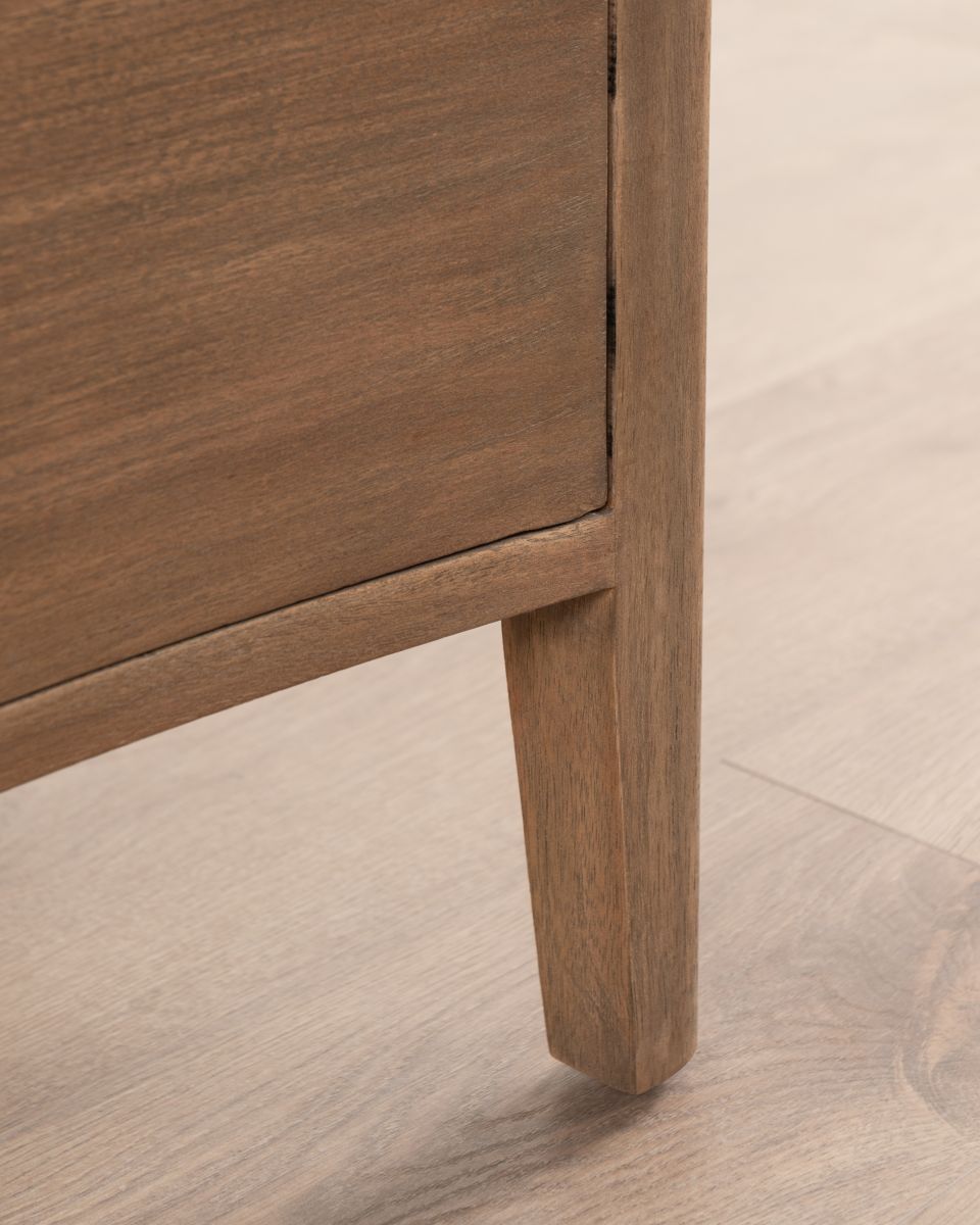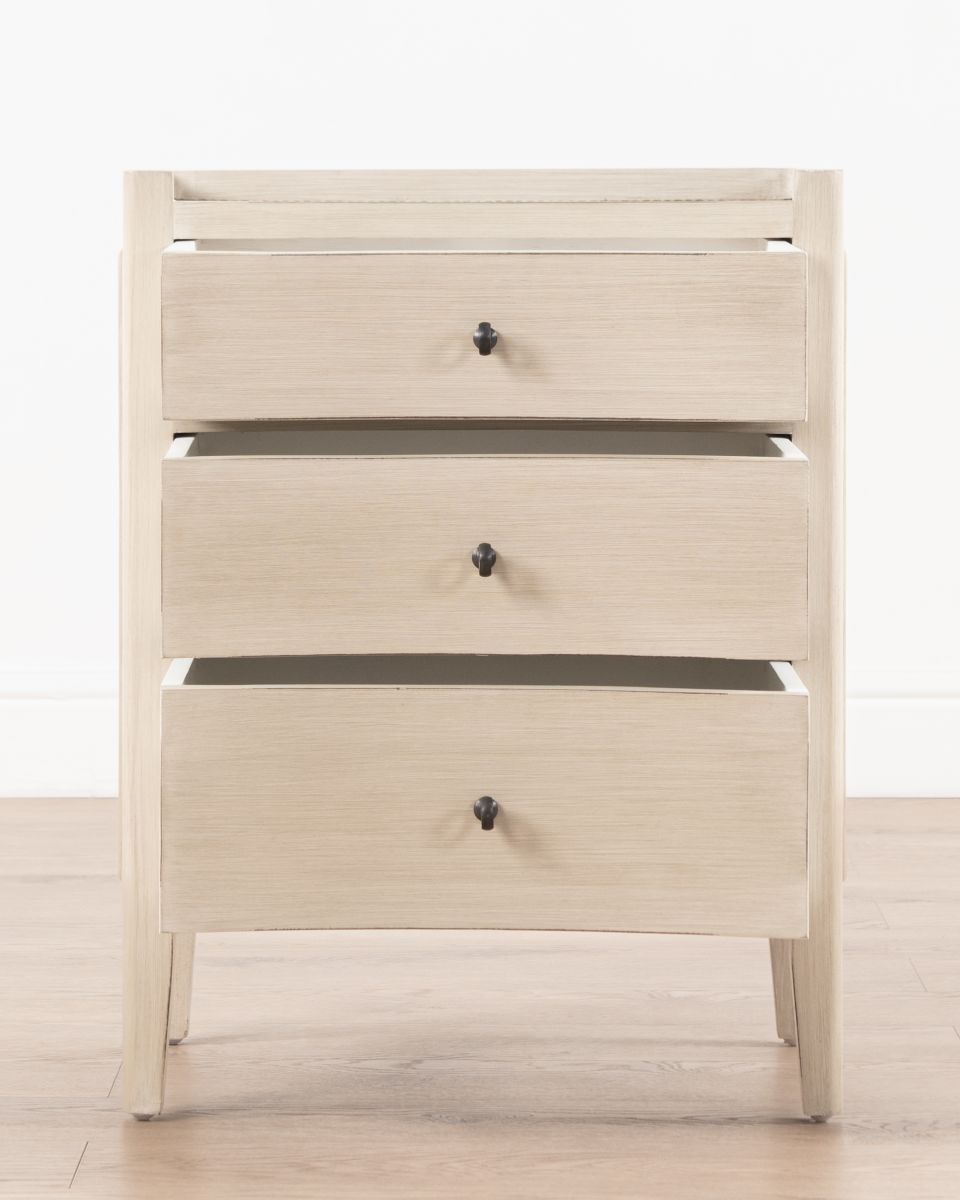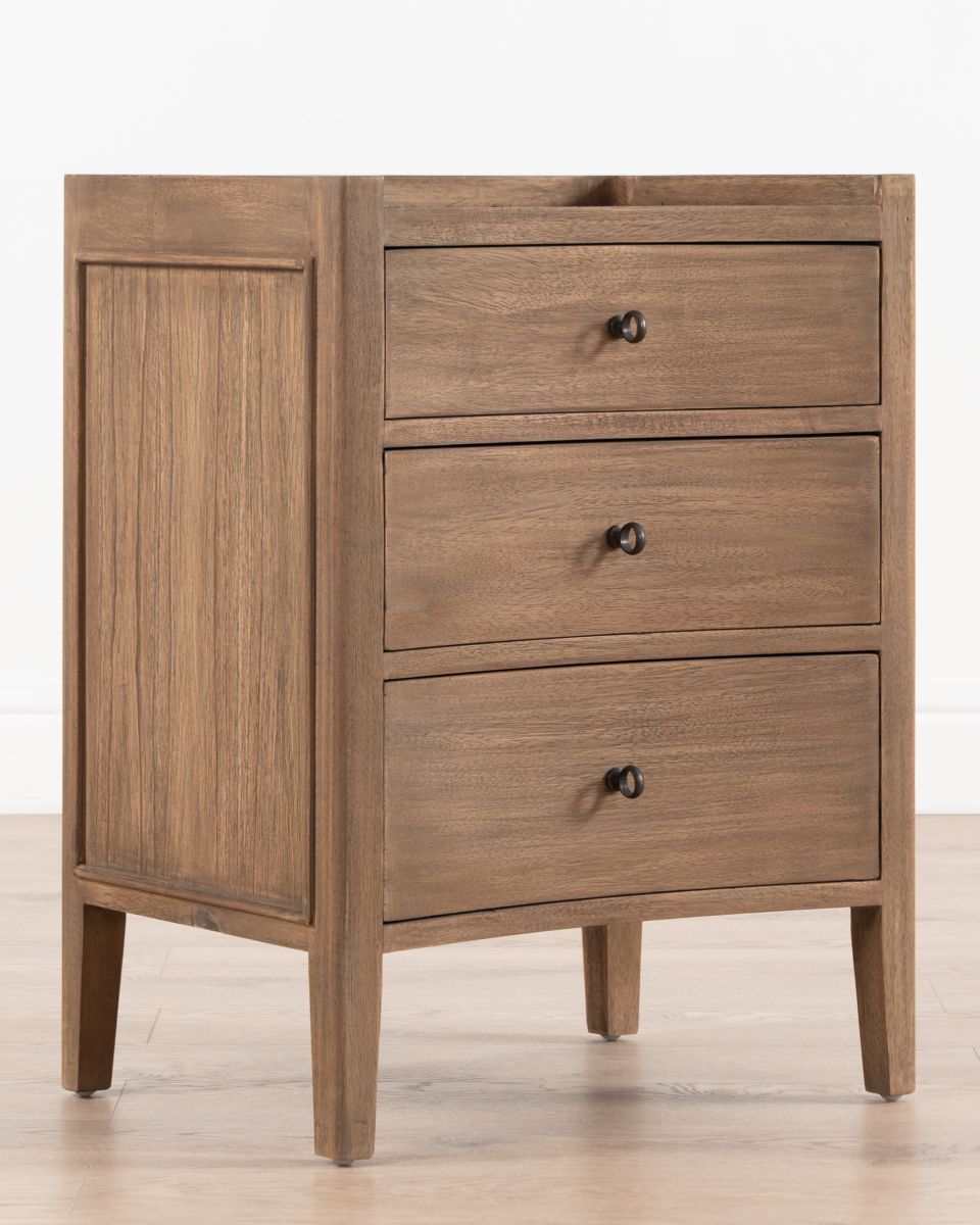 The Plantation bedside table from the Villa collection combines French style with a contemporary twist. Its classic design is defined by fine proportions and is accentuated by a rattan-detailed top. The versatile pale wood ensures it complements any colour palette, while the simple metal handle adds a touch of elegance. Position this bedside table alongside a neutral or pastel bedspread to enhance its subtle charm. Available in both white and natural finishes, it seamlessly integrates into varied interiors, providing functional sophistication.