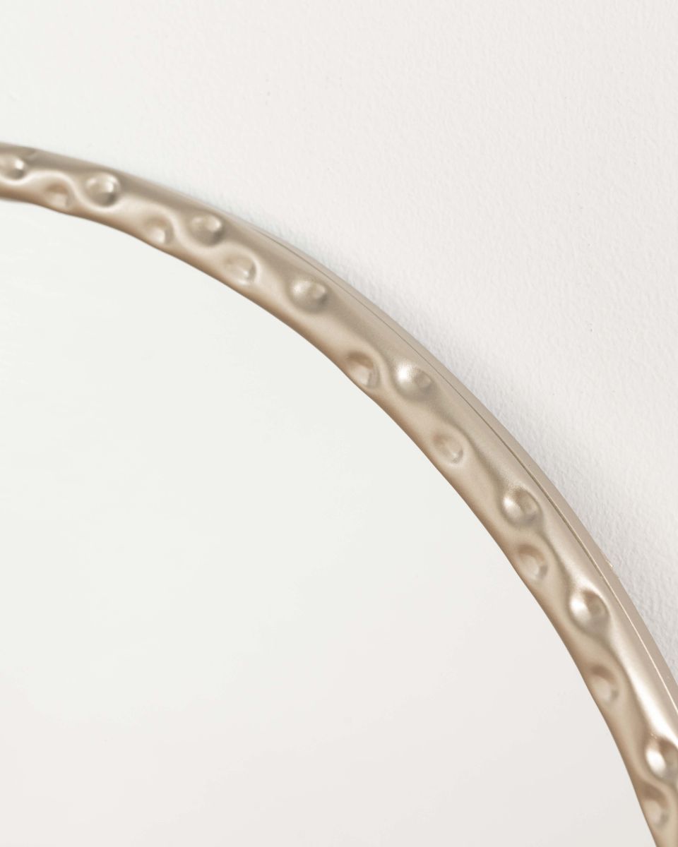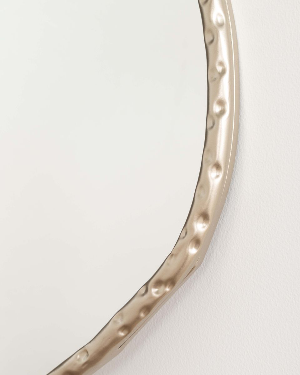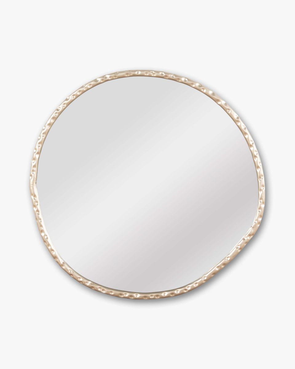 The Radiant Mirror combines organic elegance with modern artistry for a striking piece. Its round silhouette is framed by a sculpted metal edge with a subtly irregular, texture that catches the light beautifully, adding depth. A versatile statement piece, it blends well with a variety of interior styles and works well in different rooms — from bedrooms to bathrooms, living areas, and entryways.