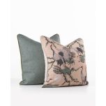 A smooth light beige velvet backing adds a touch of luxury, complemented by matching velvet piping for a perfectly tailored finish. Inside, a feather inner ensures superior comfort, offering plush support and long-lasting loft.