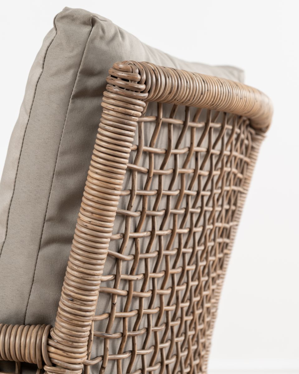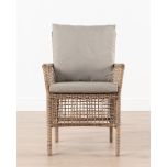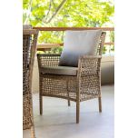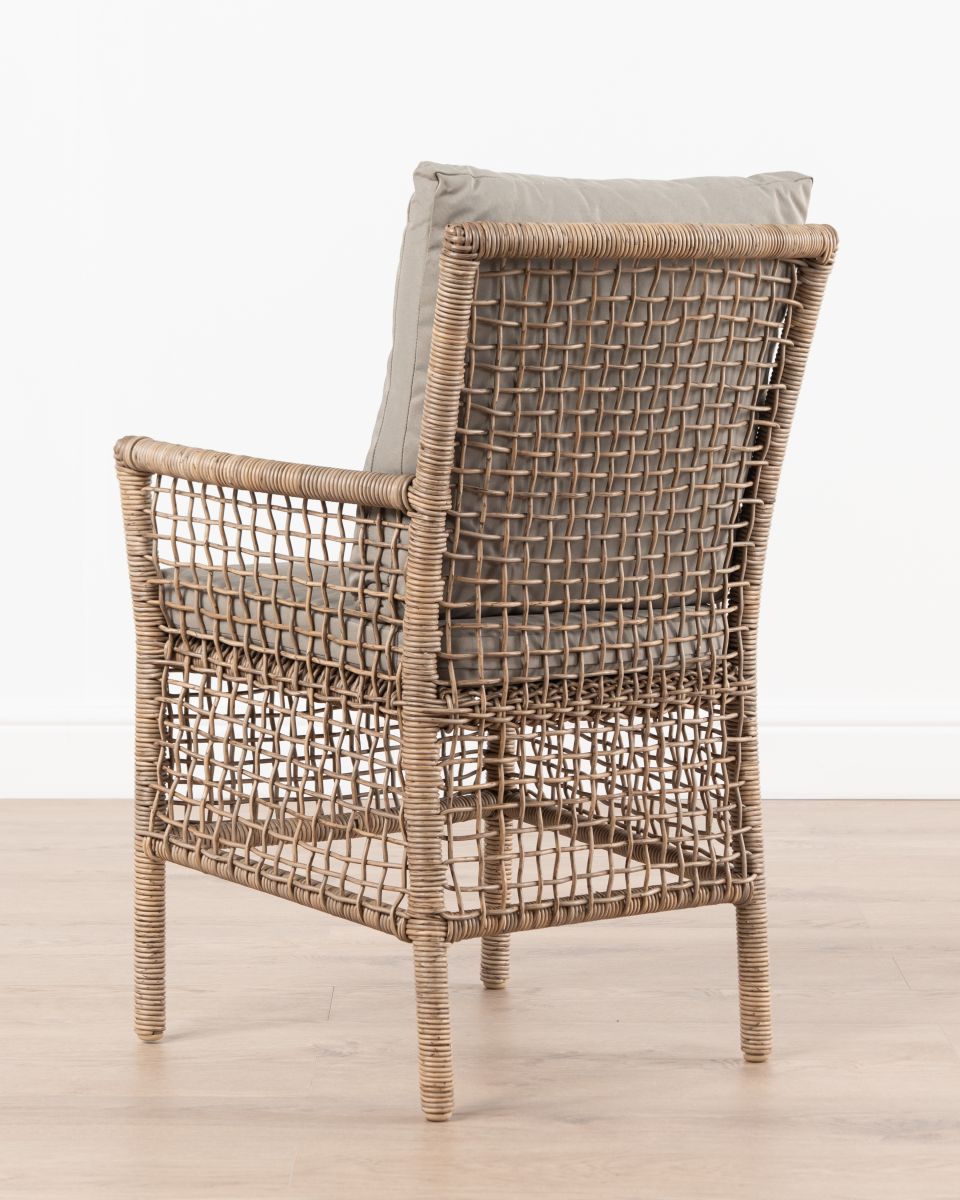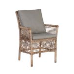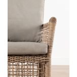 The Monica outdoor armchair from the Resort Range is the perfect addition to your outdoor oasis. Crafted with a synthetic rattan weave, this armchair exudes a beautiful natural look that effortlessly blends into any outdoor setting. Its seat cushion provides the utmost comfort, allowing you to sit back and relax in style. Whether you choose to use it as a standalone focal point or as part of a dining or patio set, the Monica armchair is sure to complement your space with its timeless elegance.