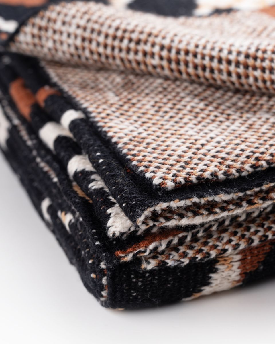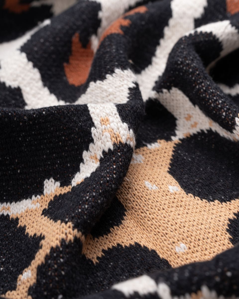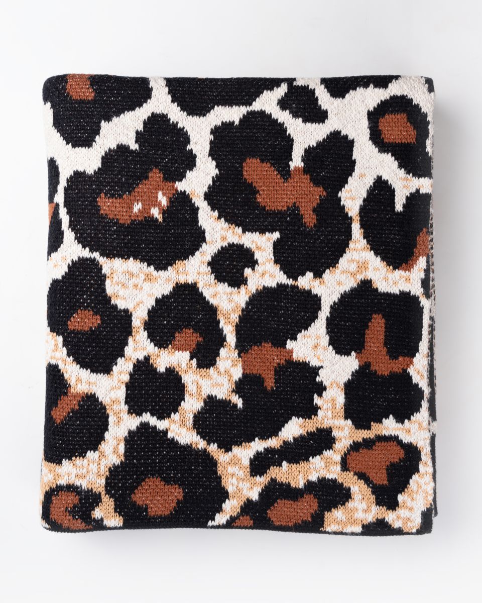 Make a bold yet timeless statement with the Savanna Leopard Throw, crafted from soft, breathable 100% cotton. This striking piece features a contemporary leopard print in rich tones of black, warm caramel, and soft beige, set against a creamy base. The design blends modern graphic appeal with classic safari-inspired elegance, making it an effortless standout in any interior.