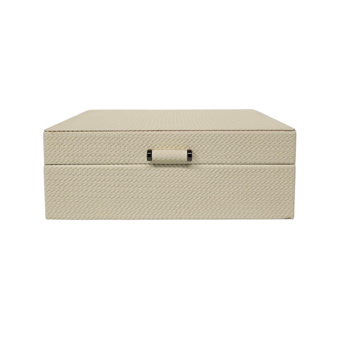 The Shagreen Cream Storage Box is the perfect combination of beauty and function. The hinged lid opens to a spacious interior, ideal for storing a variety of items. The beautiful minimalistic shagreen-style design adds a touch of elegance to any space. This versatile box is perfect for keeping your space tidy.