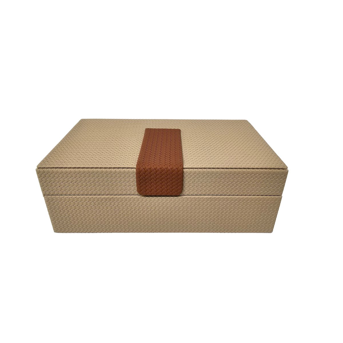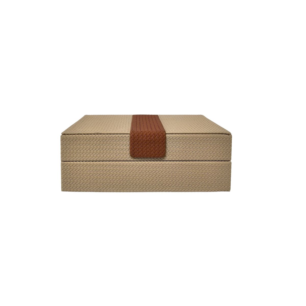 - Features a beautiful minimalistic shagreen-style design with a tan-coloured trim