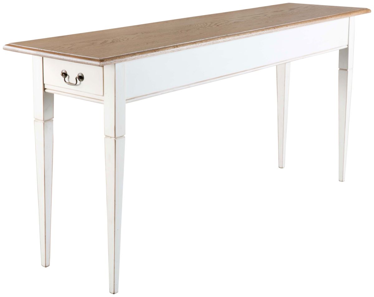 Influenced by Shaker furniture, the Shaker sofa table is a simple and sturdy table that stands out in any setting: kitchen, dining room or living room. This versatile piece can be personalised to suit your space. (shown here in Weathered Oak with an Antique White base)