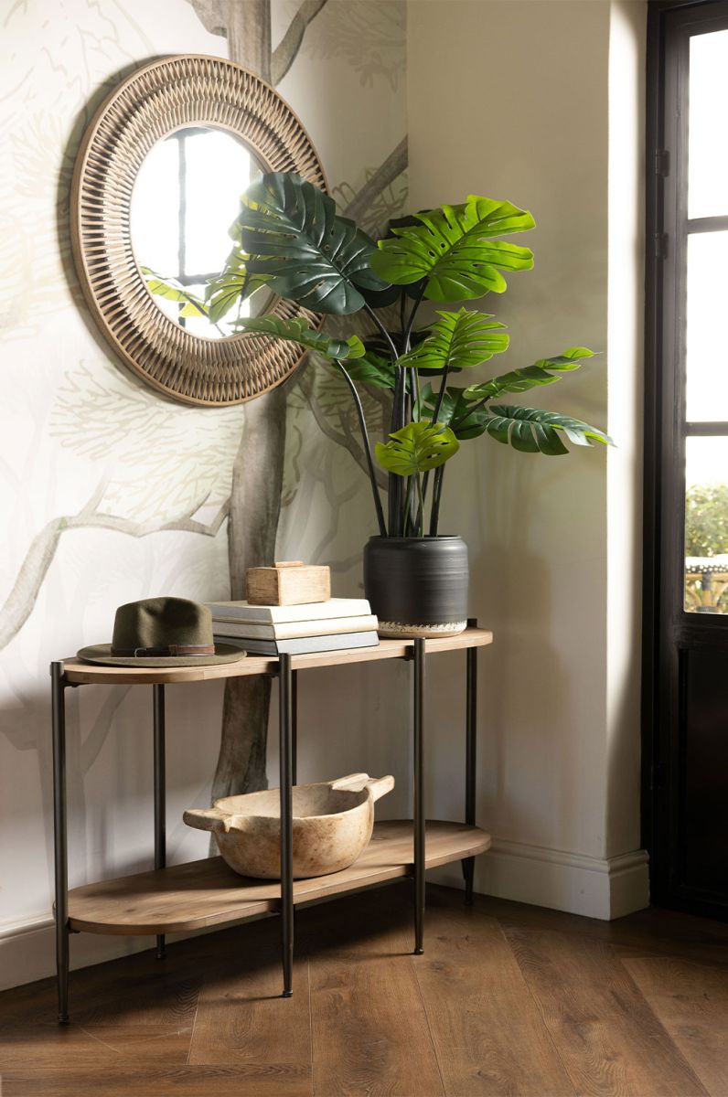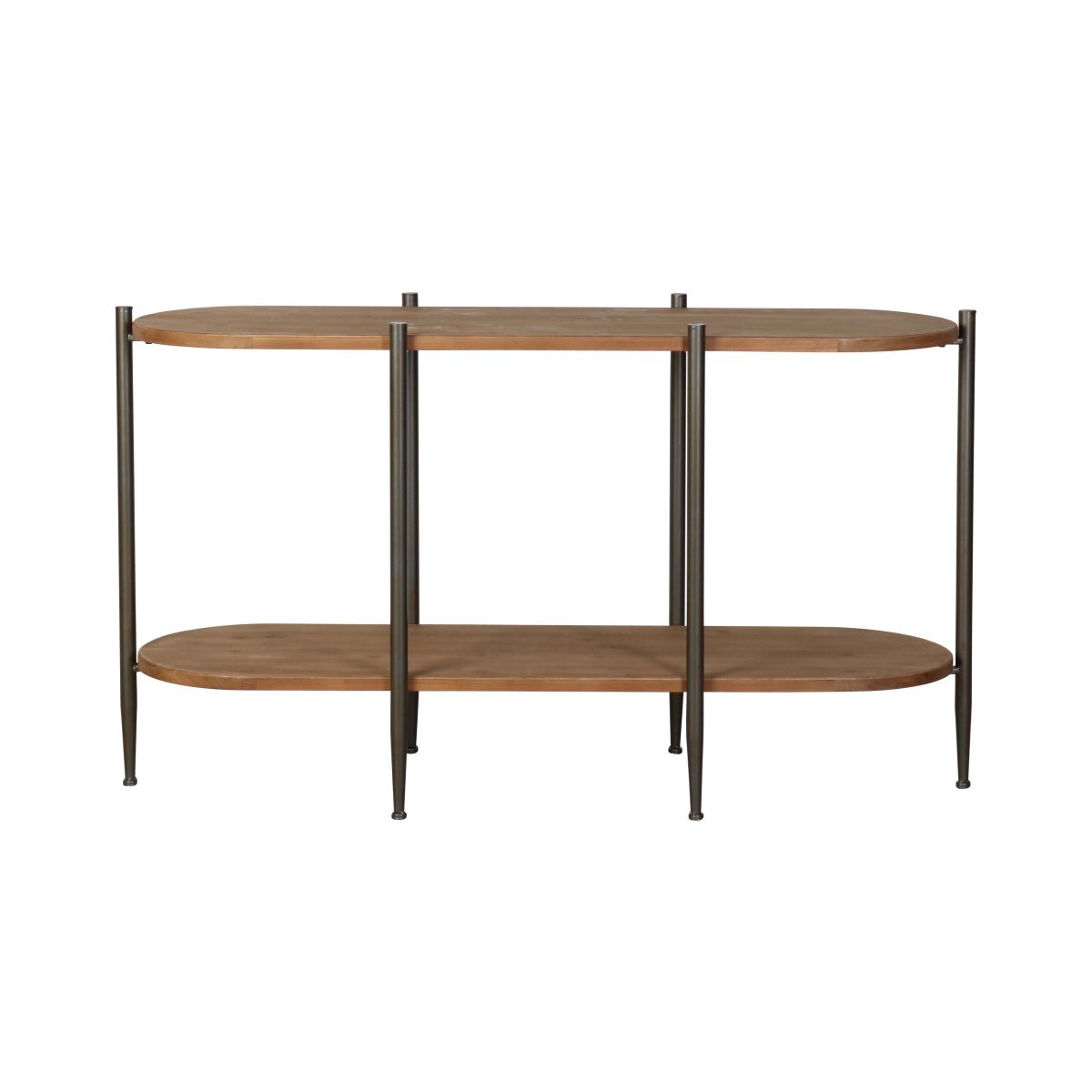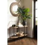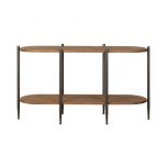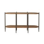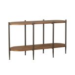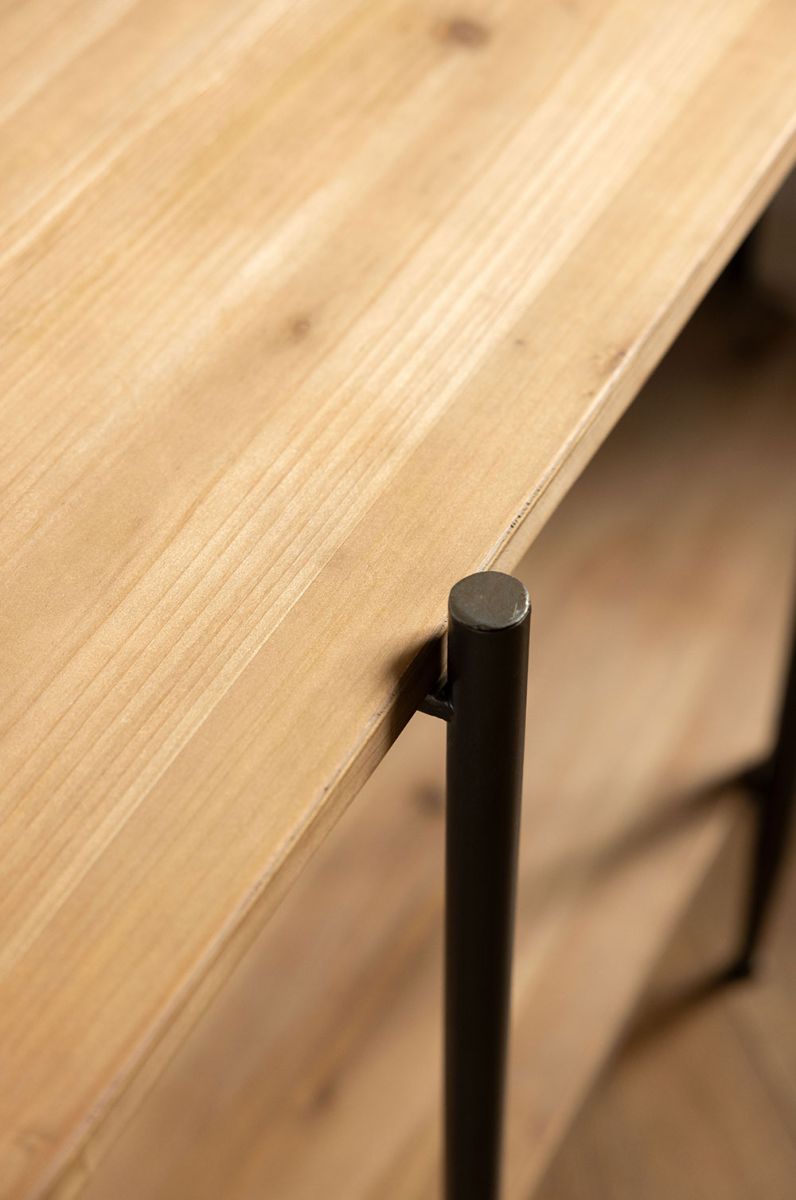 The Theo console table from our Ebony Collection combines elegant form with chic functionality. Crafted from sleek steel and fused with glass and fir wood, this two-tiered console evokes a timeless style suitable for any décor style from modern to classic. Style it alongside rustic, industrial, or modern pieces for an eclectic effect that invites conversation.