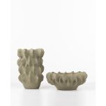 An elegant fusion of organic form and contemporary refinement, the Suede Ceramic Vase features gently ruffled detailing. Finished in a velvety, matte olive-green glaze, it's a masterpiece of understated beauty. Organic, tactile and modern, it's perfect filled with lush greenery, a small bouquet or as a standalone piece.
