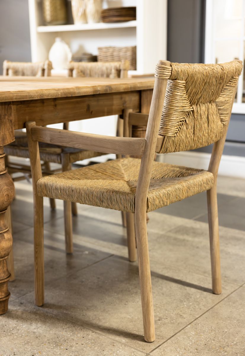 The Touws Armchair from our Karoo Collection effortlessly blends contemporary and rustic design. Featuring a beautiful oak wood frame and a seat made from natural woven grass, the design and finish allow the natural beauty of these materials to shine. Perfect for dining areas and as extra seating.