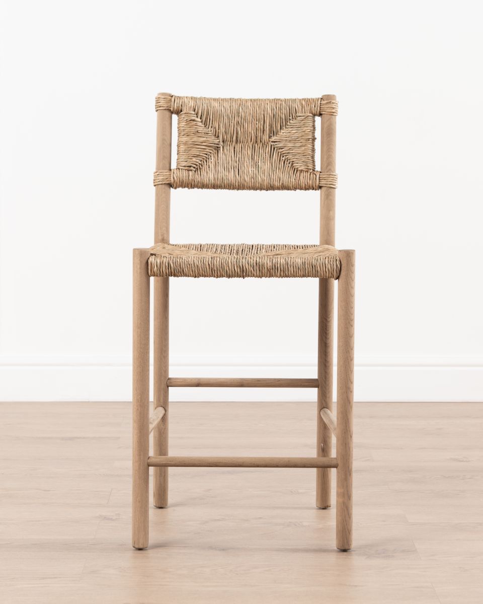The Touws Bar Chair from our Karoo Collection effortlessly blends contemporary and rustic design. Featuring a beautiful oak wood frame and a seat made from natural woven grass, the design and finish allow the natural beauty of these materials to shine. Perfect for bar counters or taller kitchen counters.