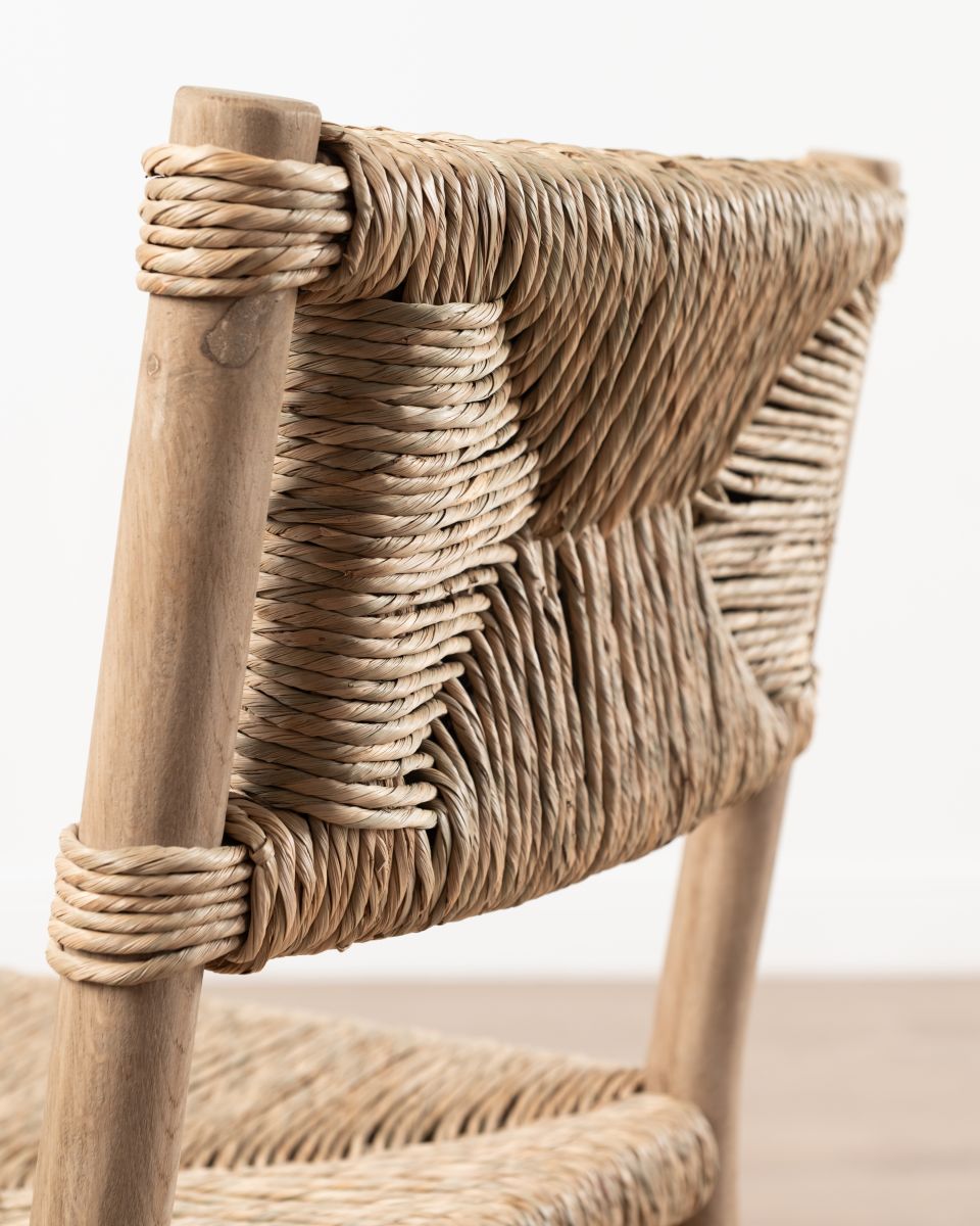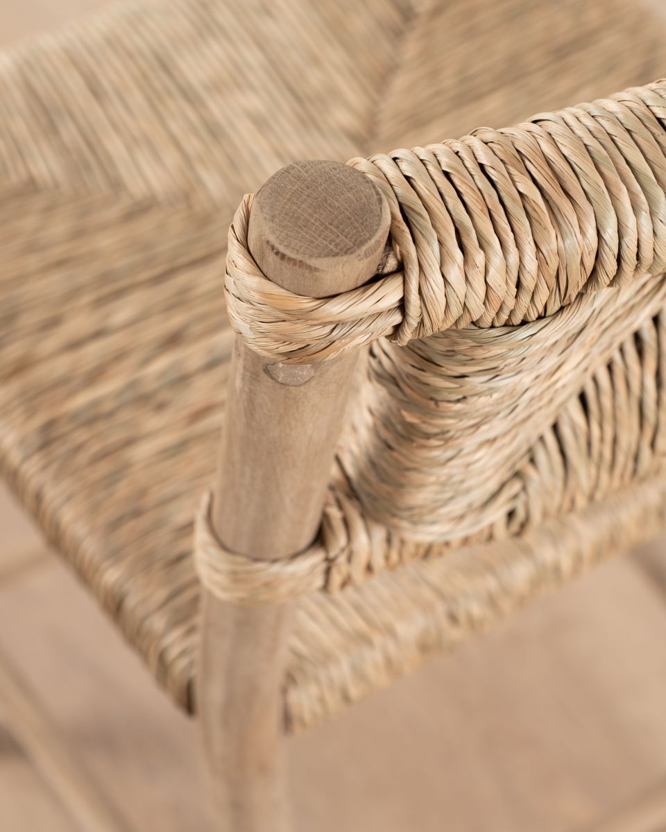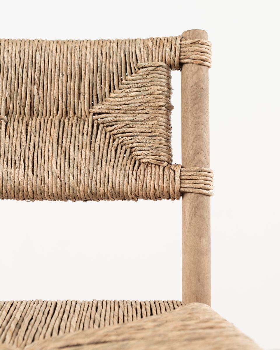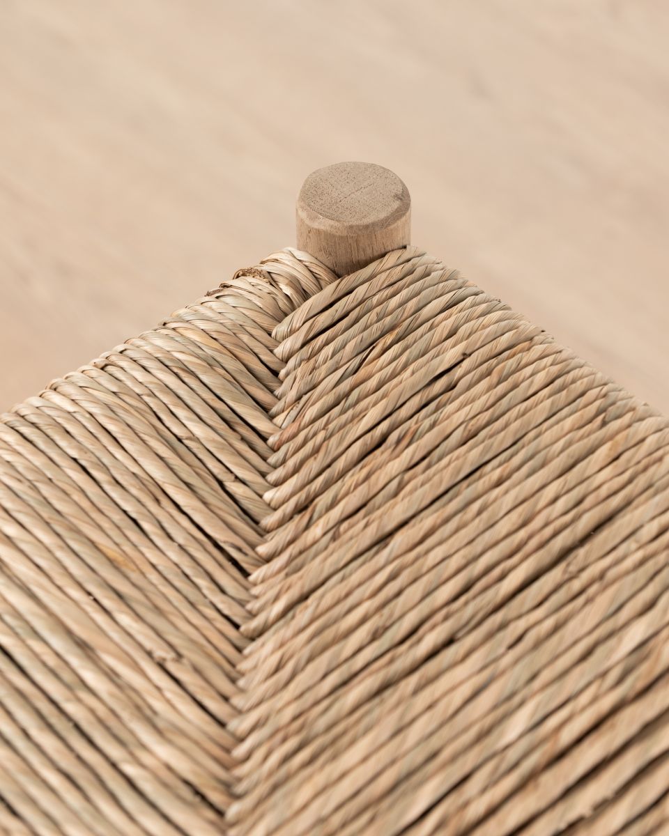 - Features a beautiful oak wood frame in a natural finish and a woven grass seat