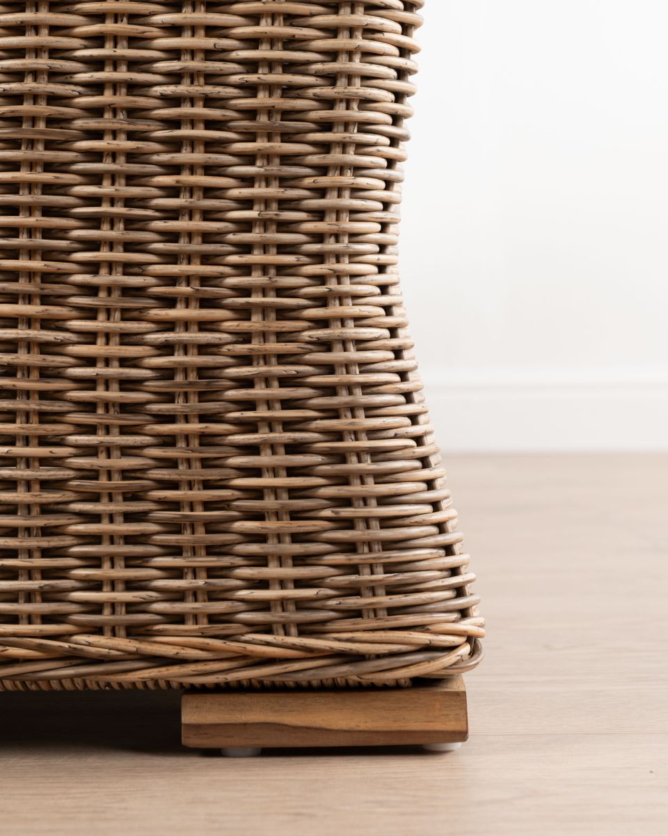 - Constructed from weather-resistant Synthetic Rattan with an Aluminium frame and teak feet.