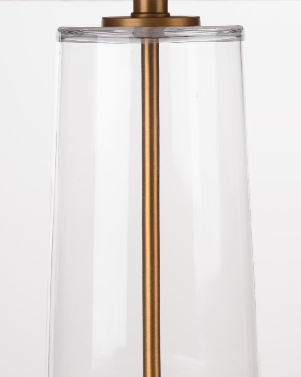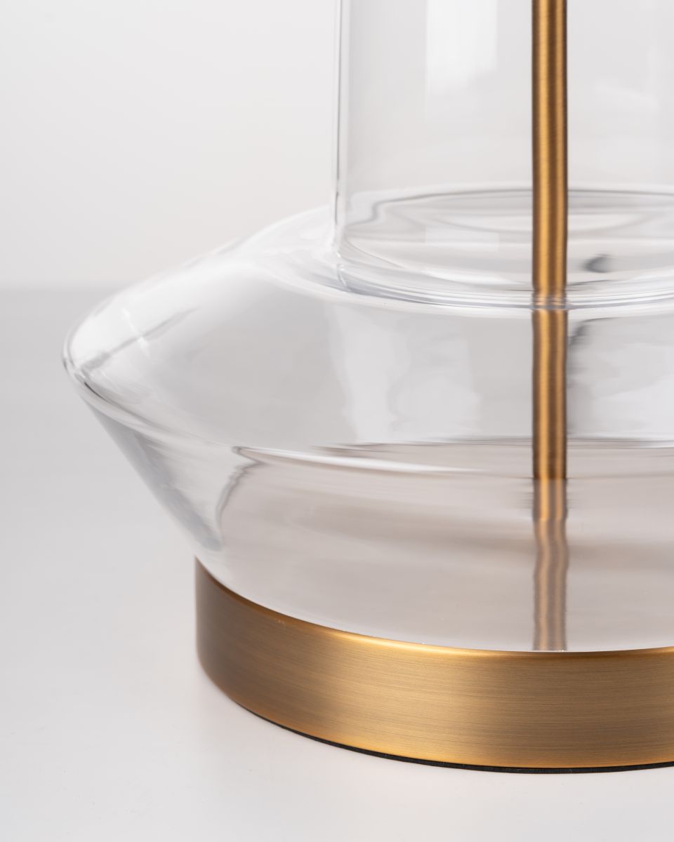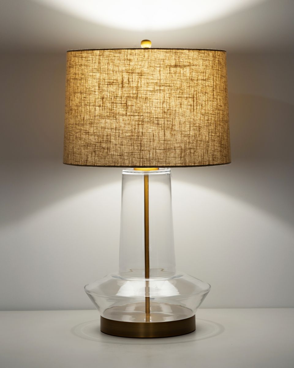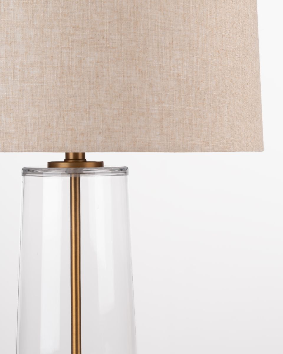 The Waverly Lamp offers a refined blend of sculptural form and understated elegance. Crafted from clear glass with sleek metal accents, its silhouette creates a light, airy presence while still making a sophisticated statement. Paired with a natural linen shade, the design delivers warm, gentle illumination—perfect for enhancing living rooms, bedrooms, or stylish workspaces. A versatile piece that elevates any interior with modern grace.