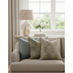 A coordinated jade-toned piped edge provides a refined, tailored finish. Inside, a feather inner delivers premium comfort, maintaining a plush, full shape that remains inviting over time.