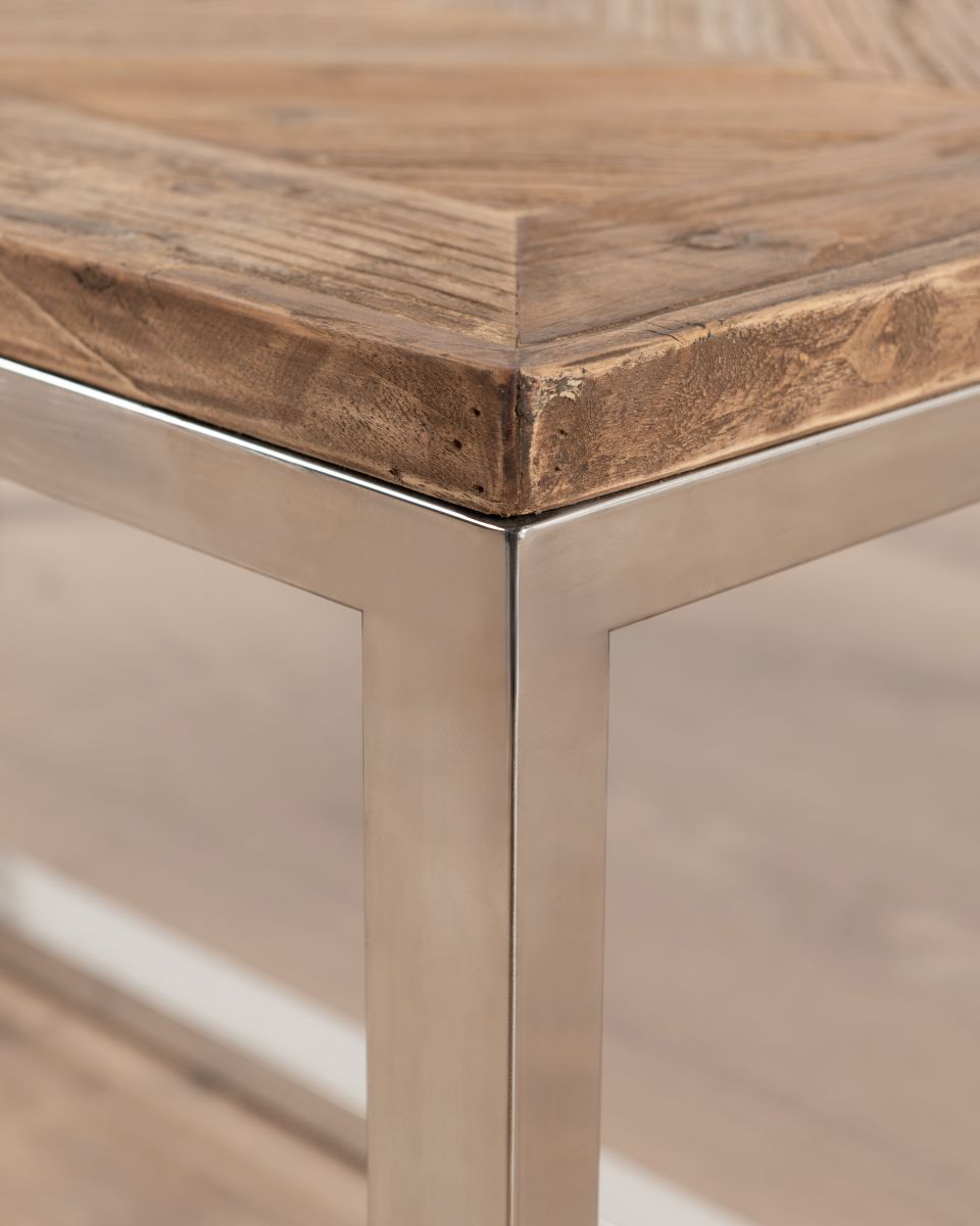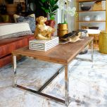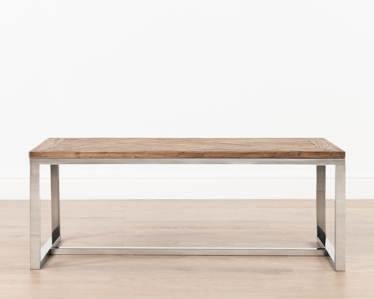 Modern Industrial Style became popular in the late 2000s taking its clues from old factories and buildings which have since been converted into lofts and workspaces. Using weathered wood and steel, this coffee table embodies the movement and style with its rustic wooden top laid into a steel frame.