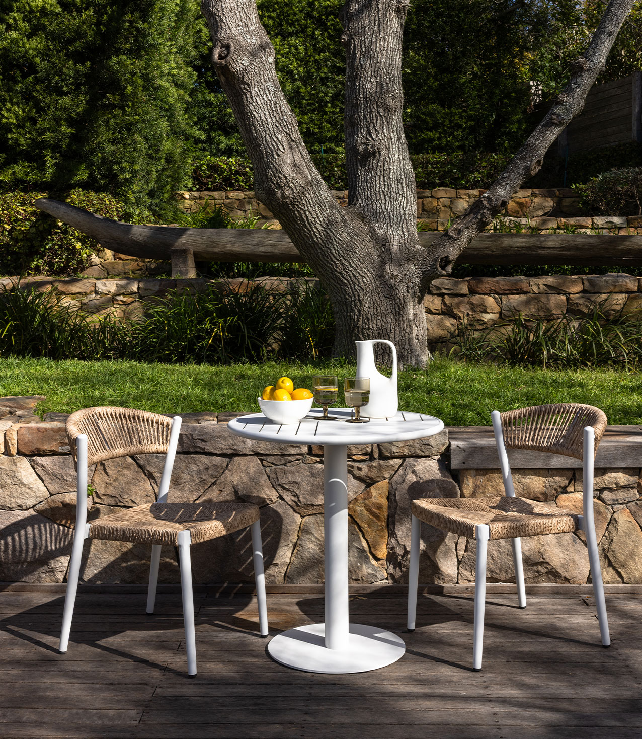 Featuring teak-framed chairs and durable synthetic rope weaves, each piece combines comfort, style, and eco-friendly materials making this range perfect for laidback outdoor living.